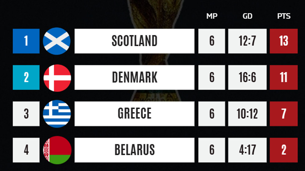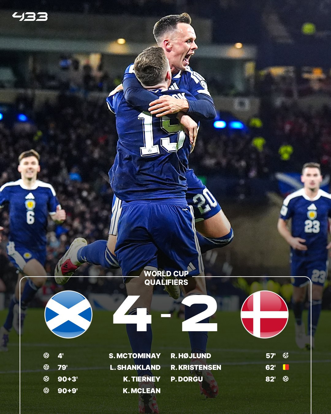 Xếp hạng chung cuộc, Scotland vượt mặt Đan Mạch để dẫn đầu bảng C, đoạt vé trực tiếp dự World Cup 2026. Đội bóng Bắc Âu sẽ phải đá play-off