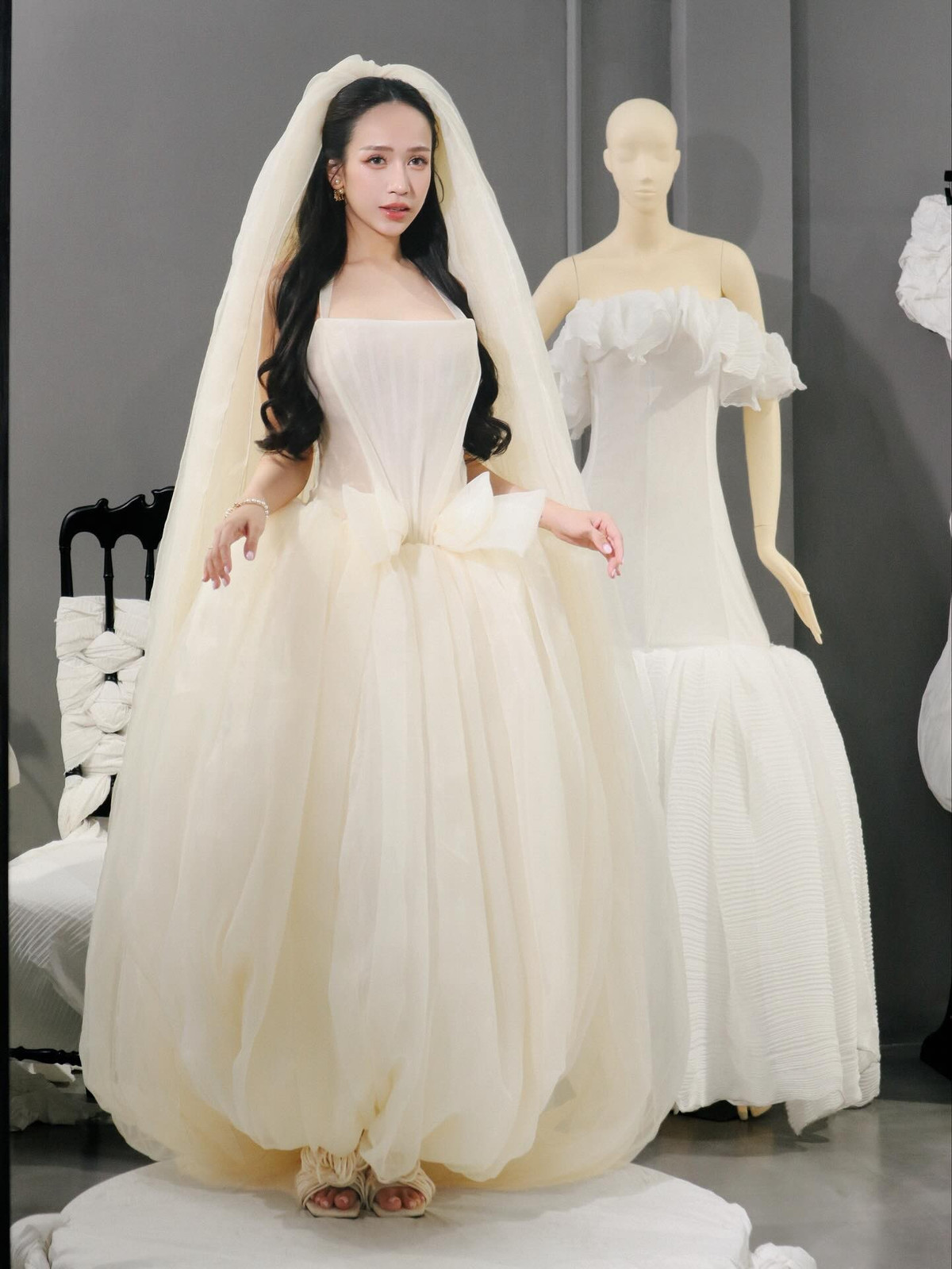 Mới đây, Joyce Phạm đã làm xao xuyến người hâm mộ khi khoác lên mình "giao diện cô dâu" đầy lãng mạn và kiều diễm. (Ảnh: FBNV)