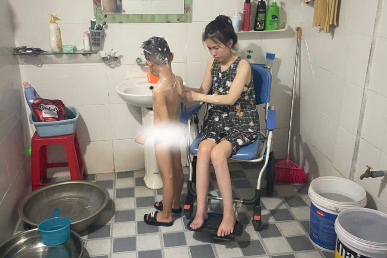 Nhưng khoảng năm 2023-2024, bệnh tái phát, chị Ý bị liệt tứ chi, phải lọc máu, tách huyết tương suốt một tuần ở Bệnh viện Trung ương Huế. Khi ra viện, sức khỏe có tiến triển, chị có thể đẩy khung đi được 5-7 m.