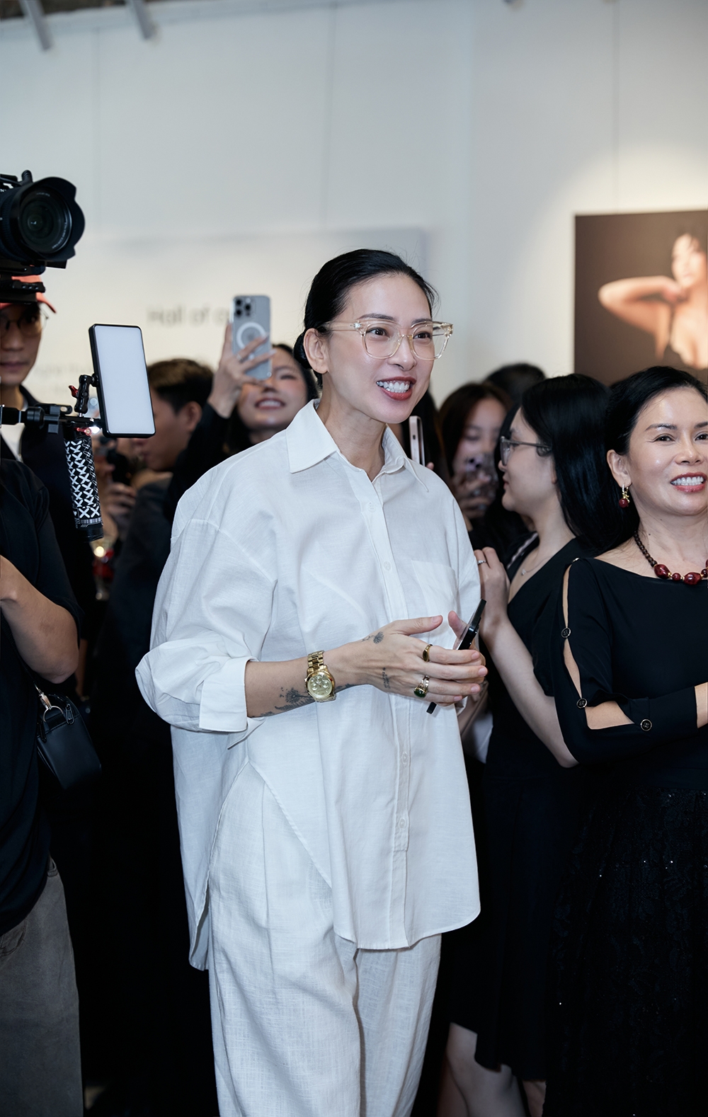 Tại sự kiện, Ngô Thanh Vân chọn phong cách thanh lịch với áo sơ mi trắng, quần tây đen, trang điểm nhẹ và búi tóc cao gọn gàng. Huy Trần diện trang phục tối giản, lịch lãm. Cả hai cùng thưởng lãm không gian triển lãm, gửi lời chúc mừng đến Vũ Cẩm Nhung – người bạn thân nhiều năm, nhân dịp cô kỷ niệm 30 năm rời sàn catwalk để theo đuổi sự nghiệp trong lĩnh vực làm đẹp.