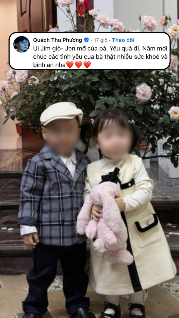 Tối 21/2, diễn viên Phương Oanh bất ngờ chia sẻ hình ảnh cặp song sinh Jimmy và Jenny trong dịp Tết Bính Ngọ kèm dòng trạng thái: “Ta say... Say tình... Say nghĩa... Say yêu thương”. Bài đăng nhanh chóng thu hút sự chú ý, nhận về hàng chục nghìn lượt tương tác chỉ trong thời gian ngắn.