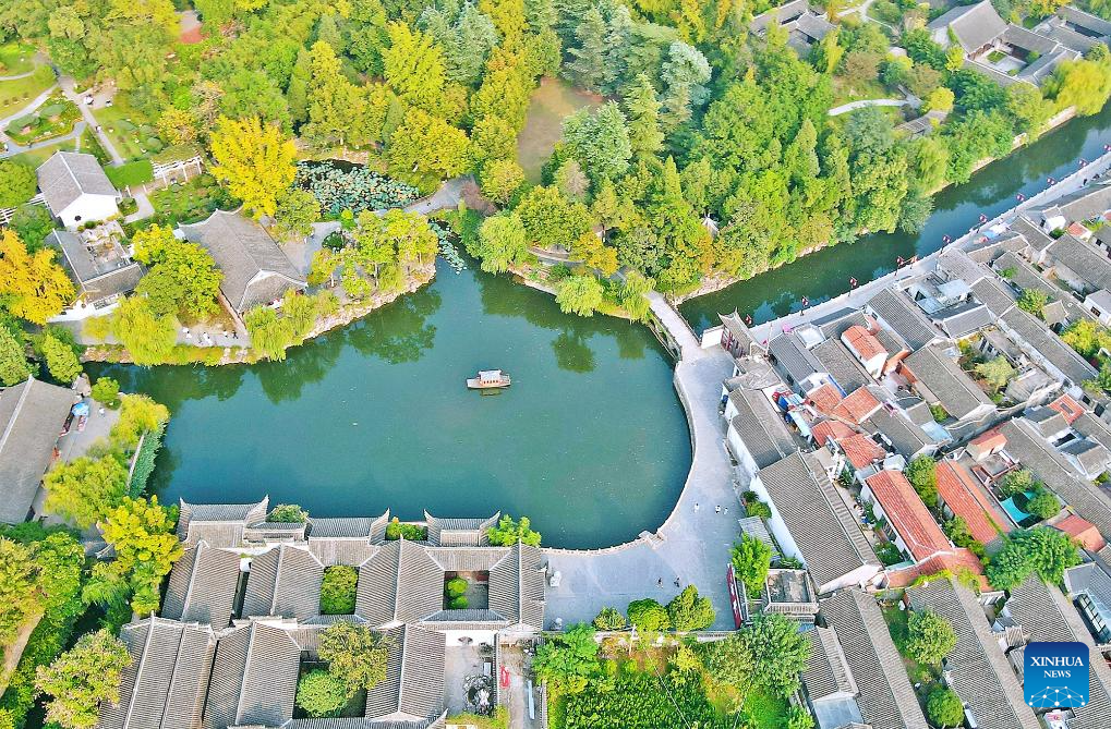 Khung cảnh ấn tượng tại một danh lam thắng cảnh ở thành phố Như Cao, tỉnh Giang Tô, miền đông Trung Quốc, nhìn từ trên cao vào mùa thu.