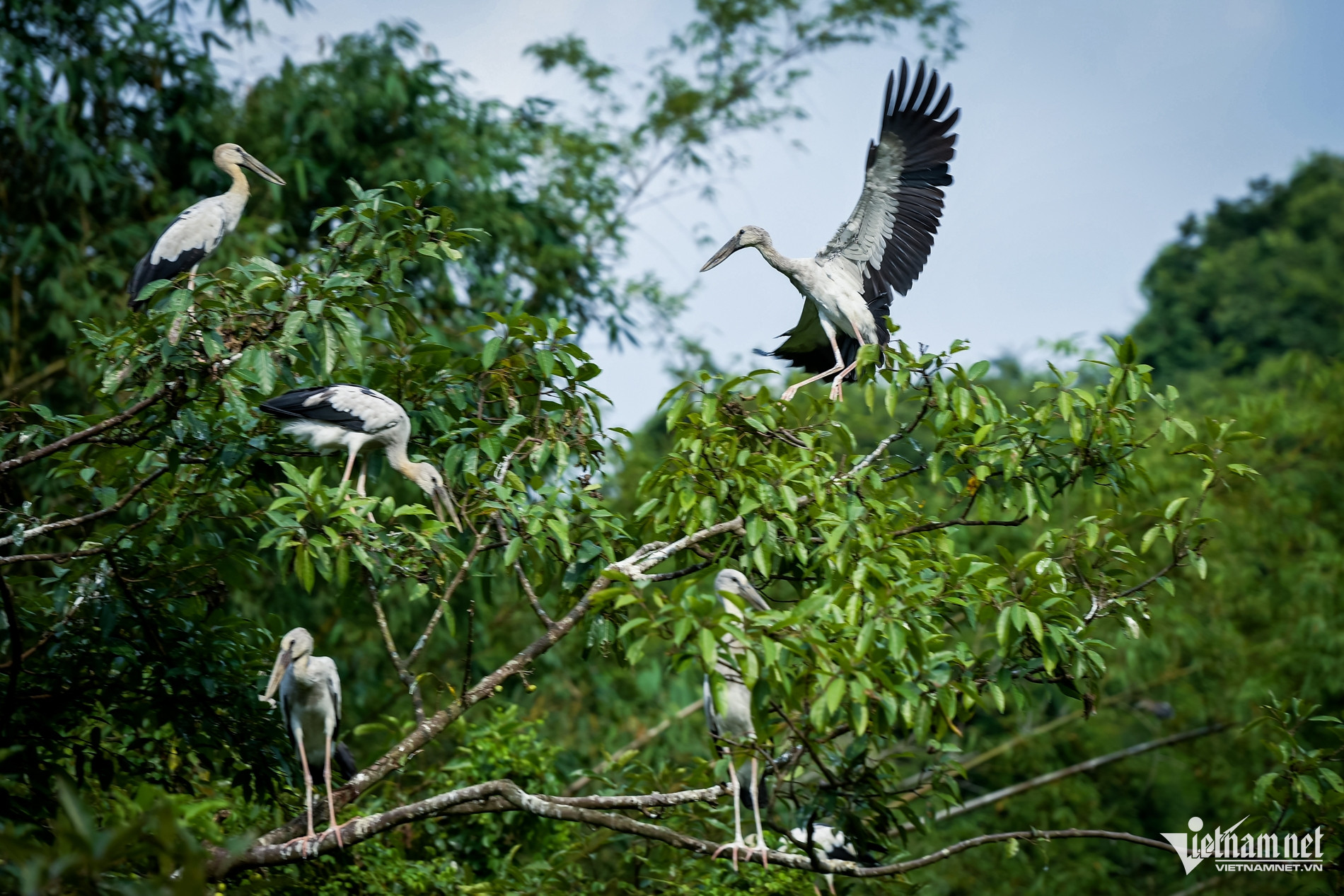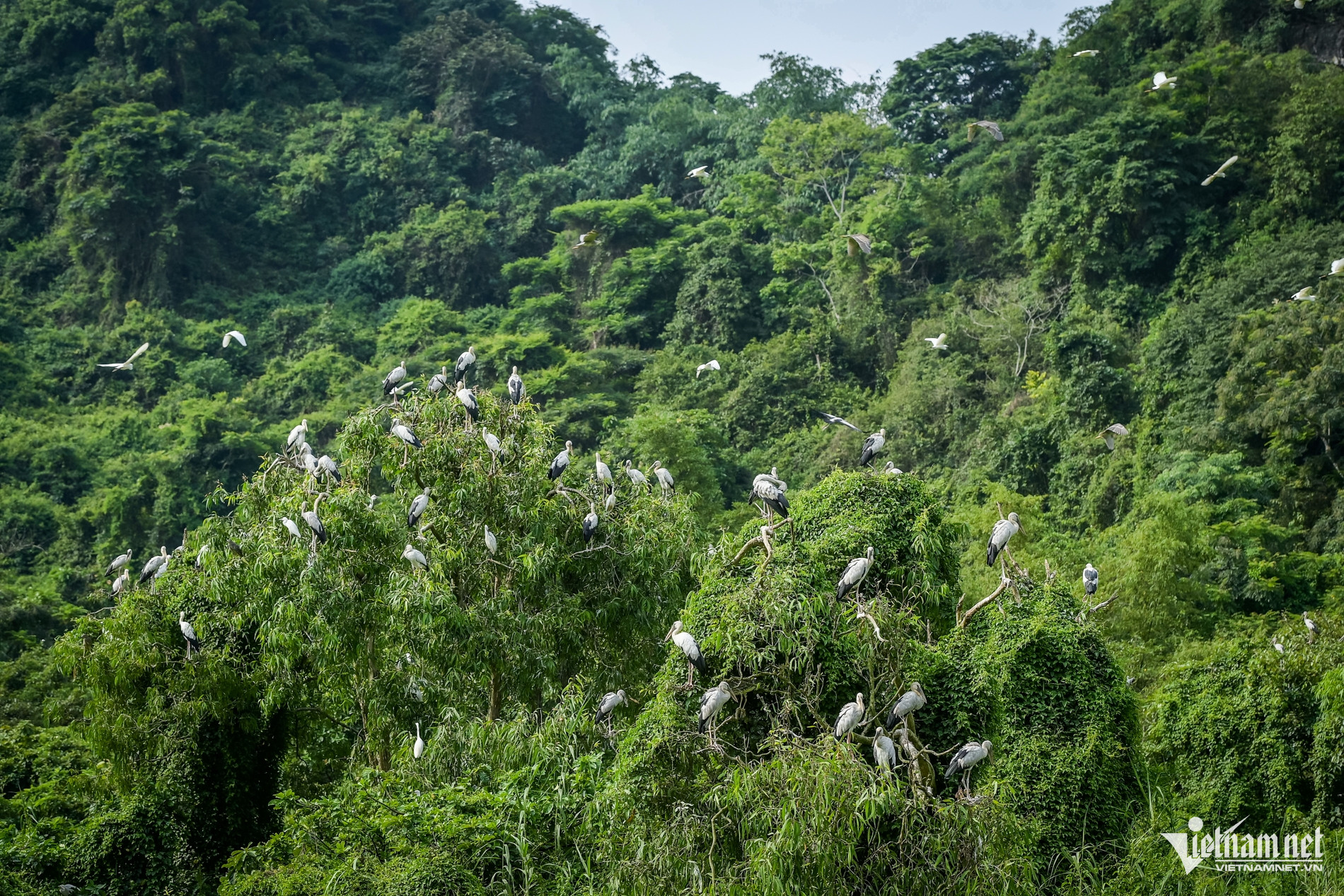 Khi đến vườn chim Thung Nham, du khách sẽ được tận mắt ngắm nhìn những đàn chim hoang dã tung cánh, bay lượn tự do trên bầu trời