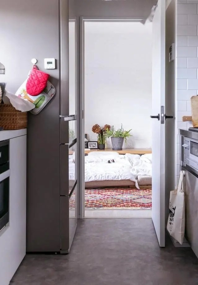 Phòng ngủ thông với phòng tắm và phòng chứa đồ trong bếp, tạo lối đi “di cư” thuận tiện. Ảnh: 6parkbbs