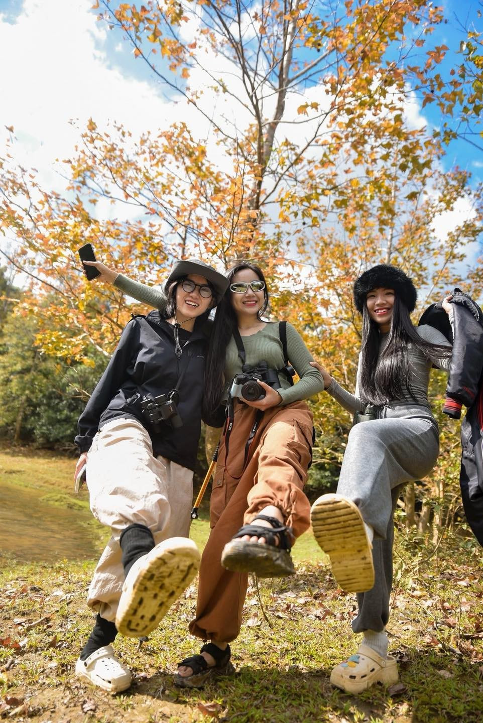 Theo kinh nghiệm của du khách và nhóm khảo sát, thời điểm đẹp nhất để chiêm ngưỡng sắc lá đỏ kéo dài từ tháng 12 đến tháng 1 năm sau. Khi đó, rừng đã chuyển màu khoảng 30%, và dự kiến trong thời gian tới sẽ đạt đỉnh rực rỡ, hứa hẹn mang đến những trải nghiệm khó quên.Ảnh Trúc Dương