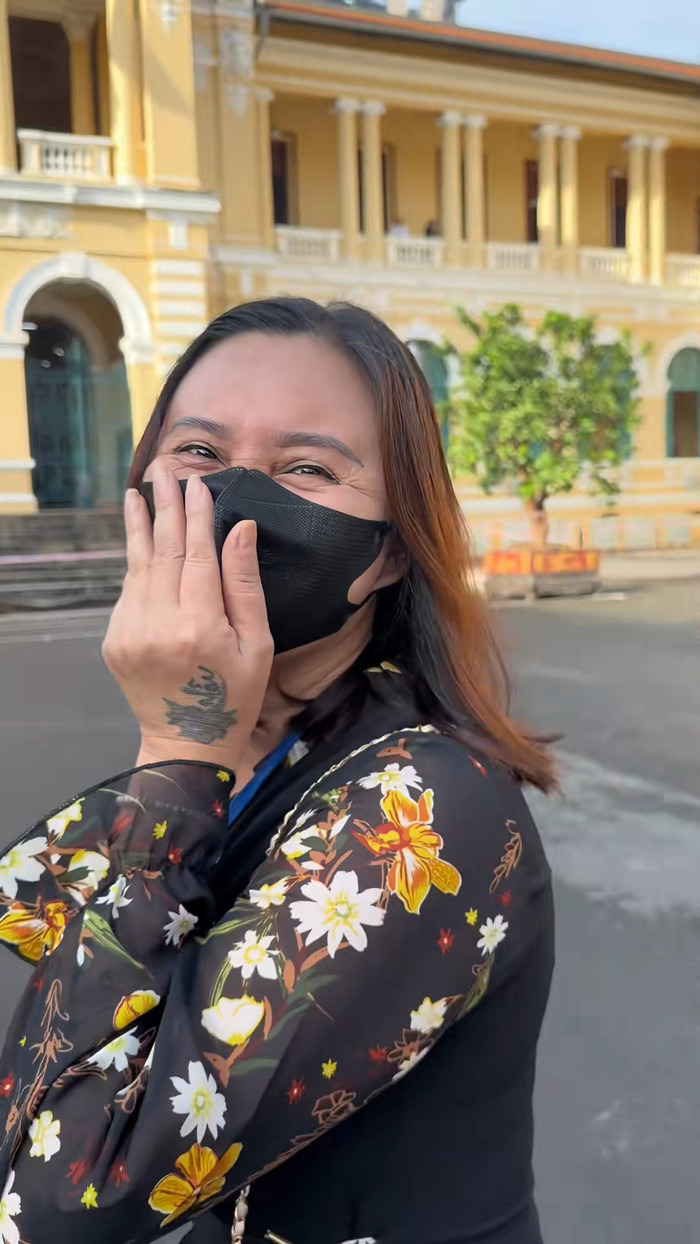 Mẹ Thùy Tiên chỉ nói vỏn vẹn một câu khi được giới truyền thông đặt câu hỏi ở phiên tòa hôm qua 19/11. (Ảnh chụp màn hình TikTok Võ Huỳnh Tấn Tài)