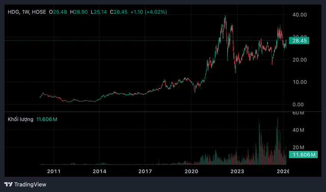 Diễn biến thị giá cổ phiếu HDG.