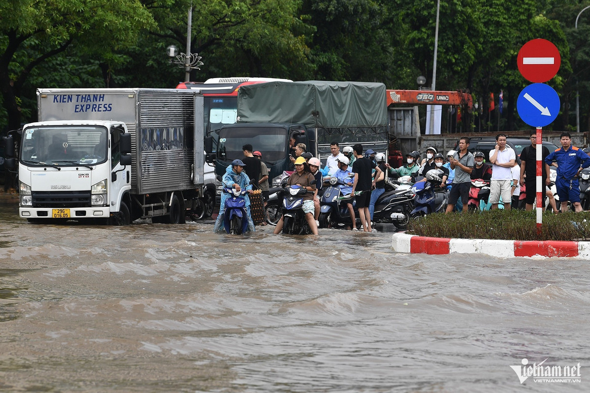 16h, nhiều tuyến đường quanh khu Mỹ Đình vẫn ngập nước khắp nơi. Người điều khiển phương tiện không thể tính toán được hướng đi vì nếu qua được đoạn này lên tuyến phố khác có thể bị ngập sâu hơn nữa.