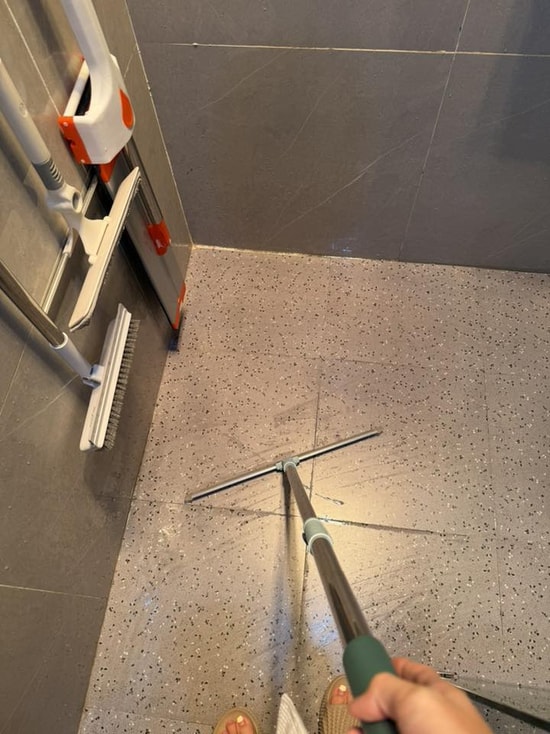 Sau khi tắm hoặc vệ sinh, hãy dùng cây gạt nước chuyên dụng để gạt hết nước đọng trên sàn và các vách kính hoặc tường ốp gạch.