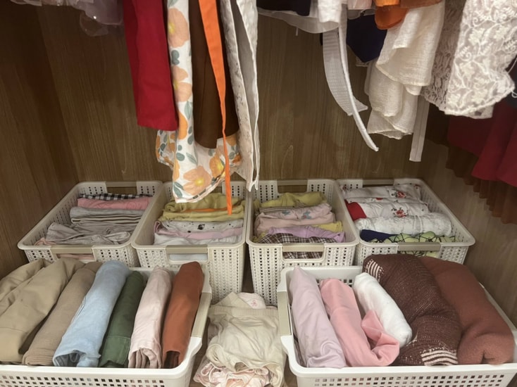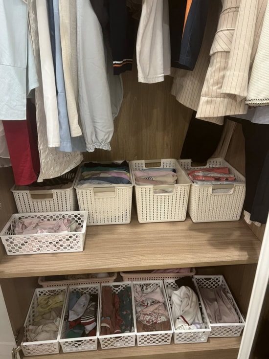 Việc chia quần áo vào các giỏ riêng biệt giúp giữ cho tủ đồ luôn ngăn nắp.