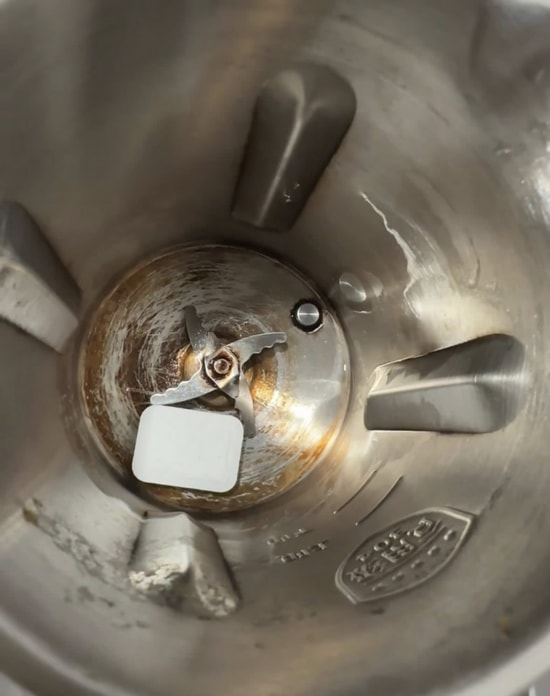 Cho một viên rửa bát vào trong cối máy làm sữa hạt.