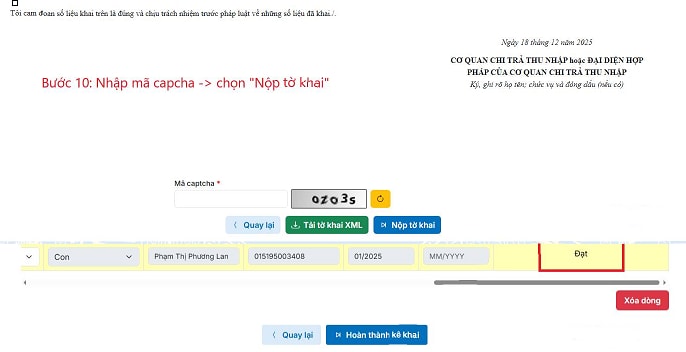 Bước 10: Nhập mã captcha hiển thị trên màn hình và chọn "Nộp tờ khai".
