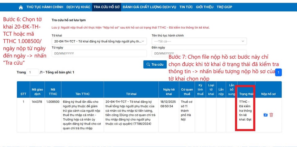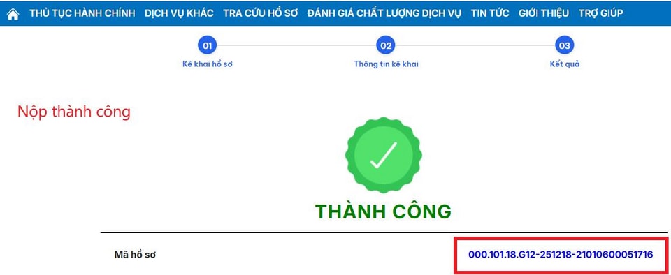 Bước 14: Cuối cùng, vào mục "Tra cứu hồ sơ đã nộp", nhập mã hồ sơ để theo dõi tình trạng và kết quả xử lý từ cơ quan thuế.