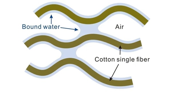 Nước bám vào các sợi bông và tạo ra lực liên kết khiến các sợi vải dính chặt vào nhau khi khô