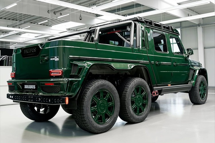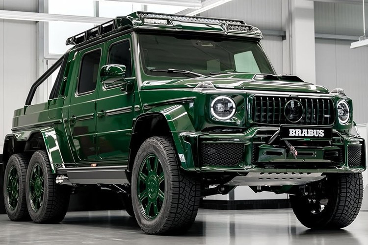 Mercedes-AMG G63 độ Brabus XLP 800 6x6 Adventure là 1 sản phẩm đỉnh cao, và khác với xe đầu tiên lộ diện cách đây vài tháng mang một vẻ ngoài đen tuyền, chiếc trong bài này được phủ lên ngoại thất lớp sơn xanh lá cây vô cùng rực rỡ.