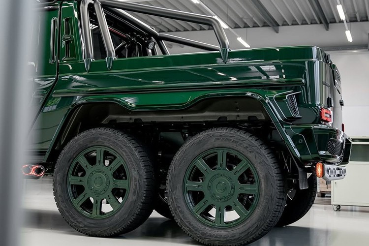 Cả 6 bánh xe đều được sơn màu xanh lá cây để phù hợp với màu ngoại thất, và màu đen là màu chủ đạo của cabin, kết hợp giữa da và da lộn.