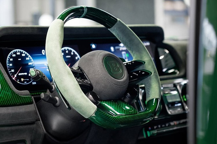 Tuy nhiên, cũng có rất nhiều điểm nhấn màu xanh lá cây ở bên trong nội thất Brabus XLP 800 6x6 Adventure, chủ yếu là ở đường khâu, đường viền và phần ốp sợi carbon sơn. Toàn bộ buồng lái đã được tùy chỉnh, và mặc dù một số người đam mê xe có thể sẽ cho rằng màu sắc này hơi quá đà.