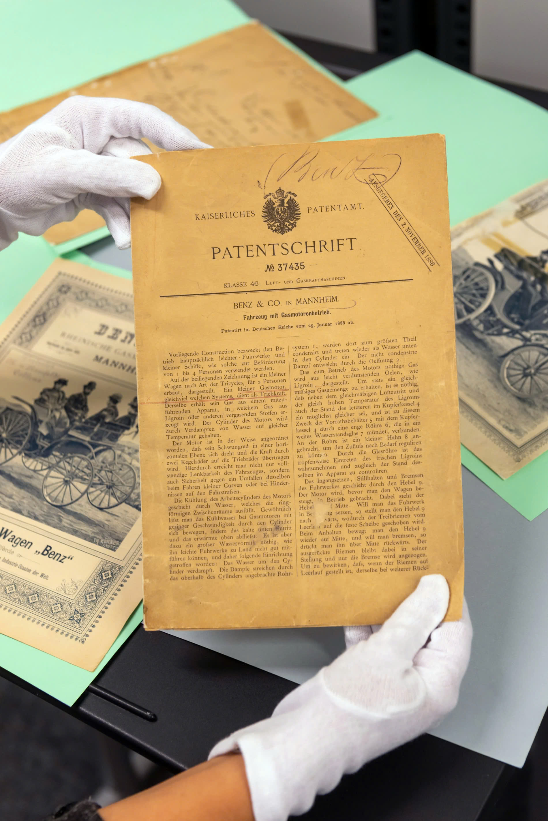 Bằng sáng chế cho chiếc ô tô đầu tiên trên thế giới do Carl Benz đệ trình.