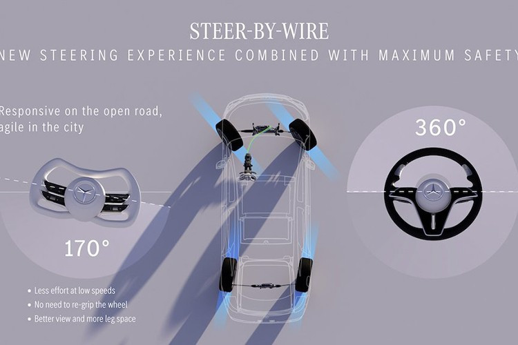 Ở những vị trí khác là những chi tiết khảm xà cừ tinh xảo trên bảng táp-lô và cửa xe, cùng với vô lăng bốn chấu ấn tượng kiểu xe cổ. Vô lăng này, với trục thủy tinh in logo Mercedes, được kết nối với hệ thống lái điện tử và hệ thống lái bánh sau để thu hẹp bán kính vòng quay và loại bỏ nhu cầu xoay vô lăng liên tục.