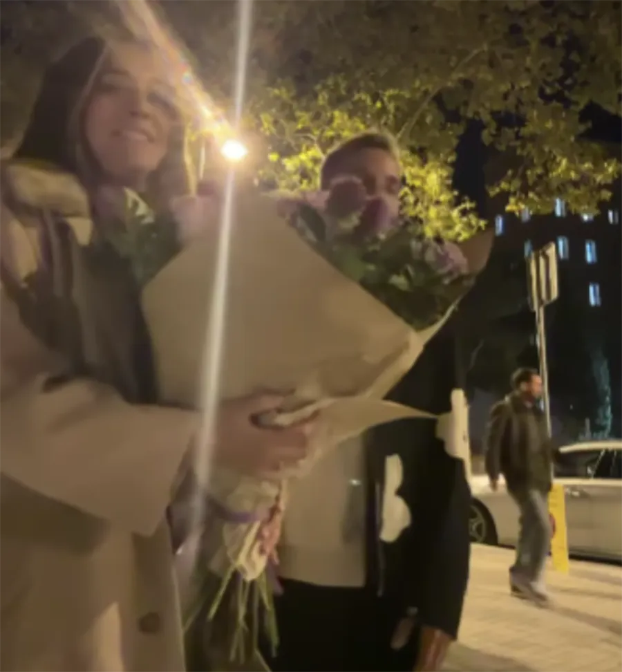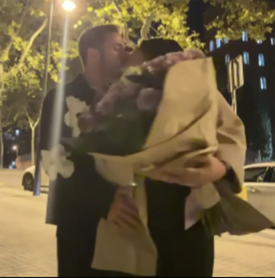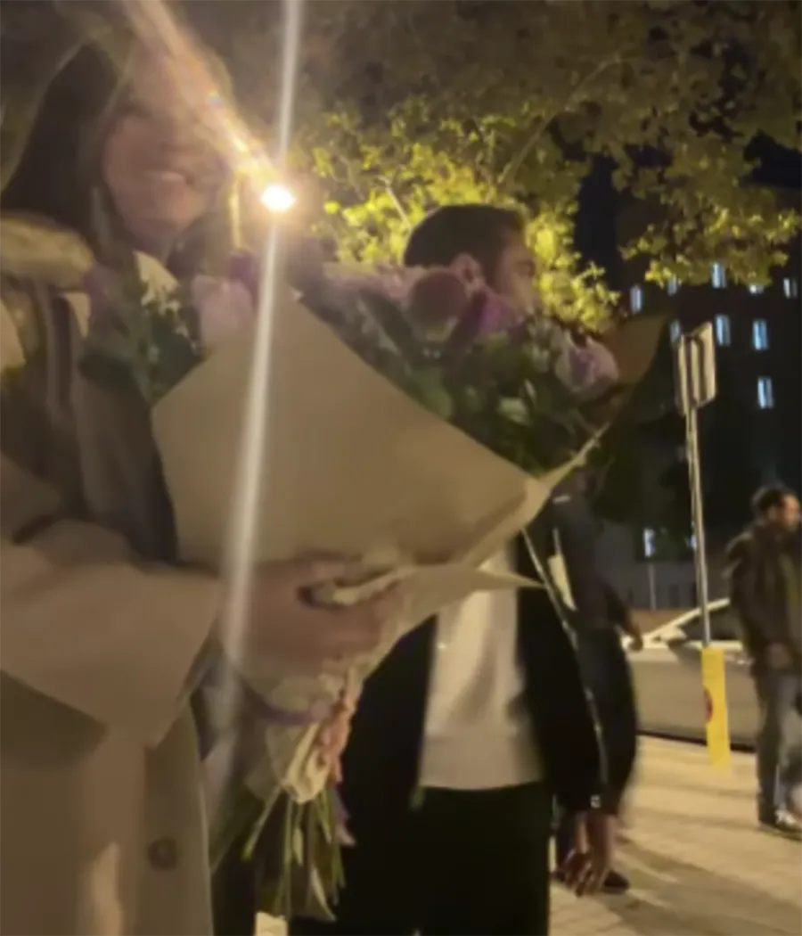 Tuy nhiên, trong khoảnh khắc chớp mắt, một cặp đôi may mắn đã vô cùng sửng sốt khi phát hiện siêu sao 38 tuổi Messi thản nhiên đi ngang qua họ trên phố, giữa lúc họ đang quay một đoạn clip lãng mạn ngắn, trong đó, cô gái cầm bó hoa lớn ôm chàng trai là người yêu của mình.