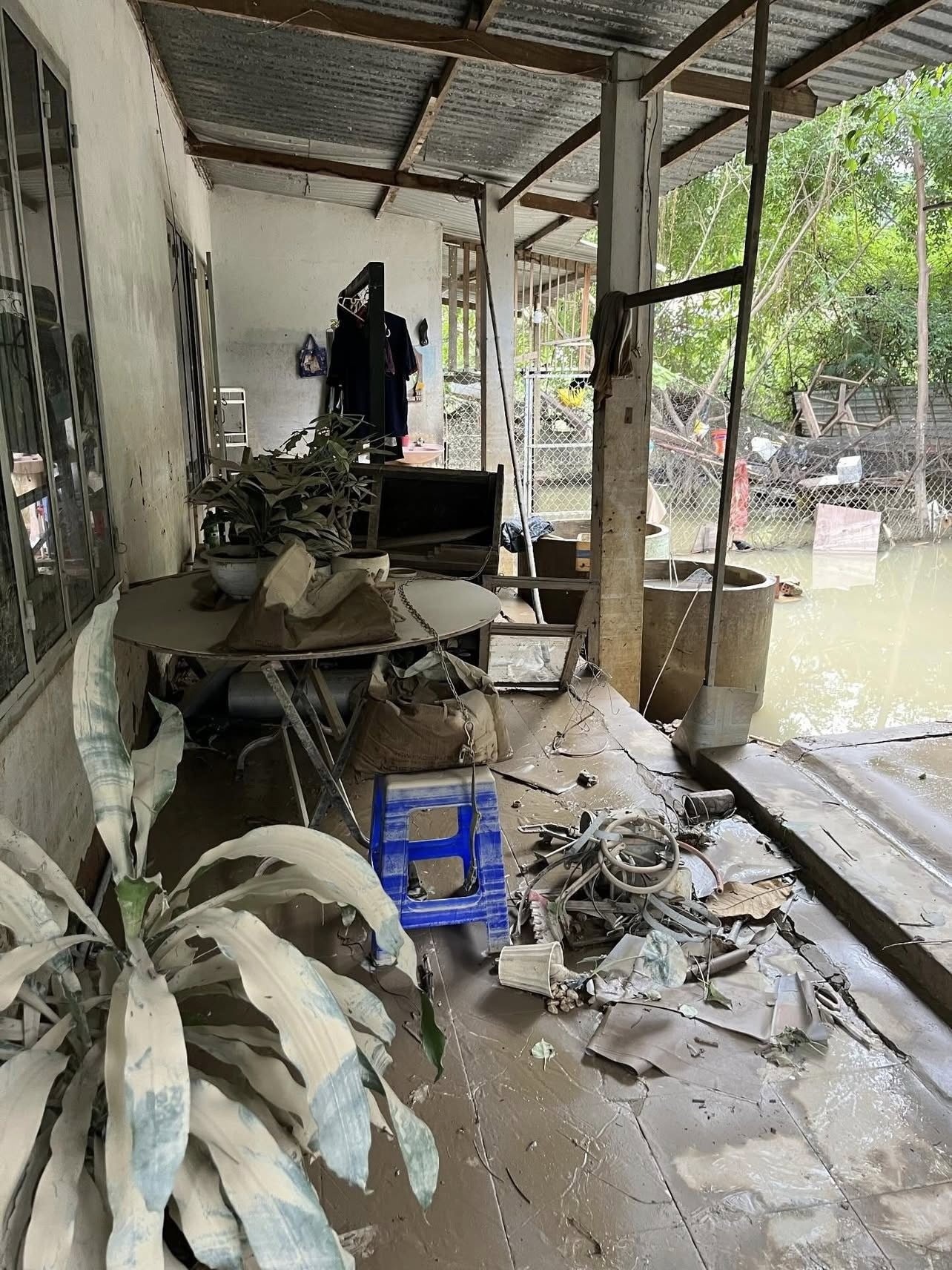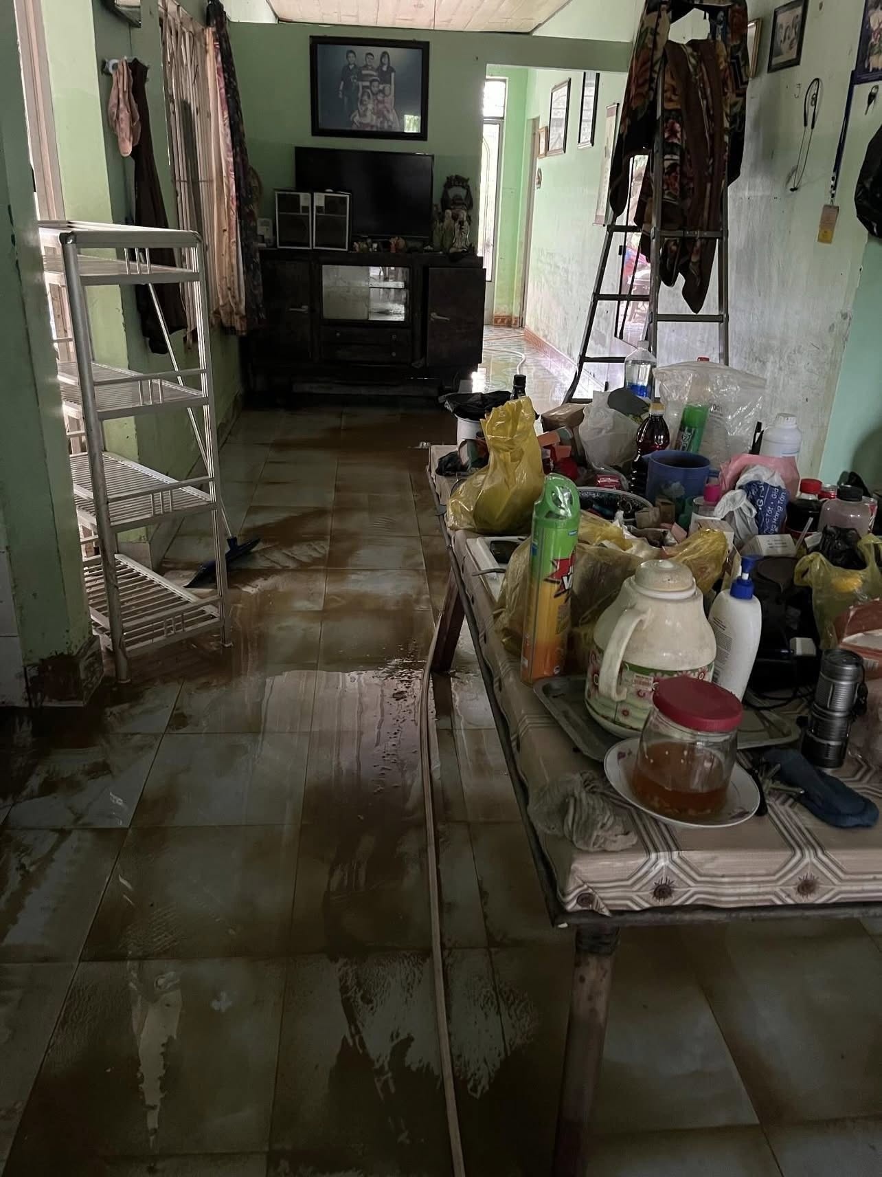 Bên trong ngôi nhà bị ngập lụt của Cát Tường ở Vĩnh Thái cũ. Ảnh: NVCC.