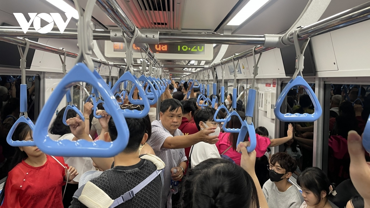 Trong dịp Tết, các đoàn tàu metro luôn đông khách và là phương tiện giao thông hữu hiệu giúp người dân kết nối với Đường hoa Nguyễn Huệ, Đường sách...