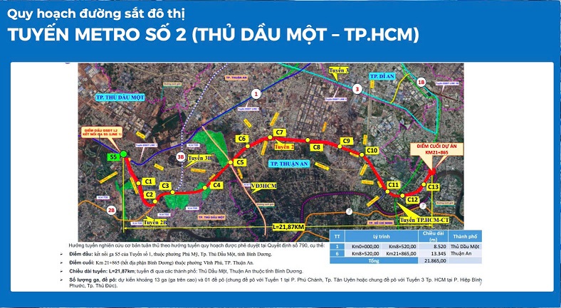 Quy hoạch dự kiến tuyến metro số 2 (Thủ Dầu Một - TP.HCM). Nguồn: Ban Quản lý Đường sắt đô thị