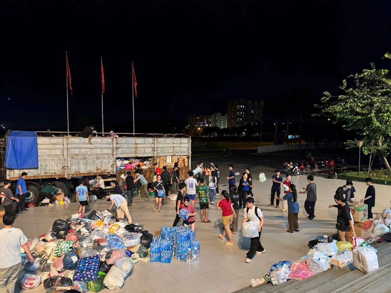 Trước đó, ngày 22/11, lượng hàng hóa gửi về các nhà ga tăng đột biến. Tối cùng ngày, hàng chục chuyến xe tải đã được huy động để vận chuyển toàn bộ hàng hóa về kho tập trung của Ủy ban MTTQ Việt Nam TP.HCM.