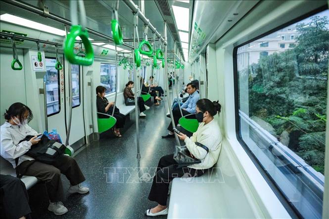 Việc di chuyển bằng tàu điện trên cao với không gian sạch sẽ, an toàn, giúp hành khách có thêm thời gian thư giãn, nghỉ ngơi trong suốt hành trình. Ảnh: Hoàng Hiếu/TTXVN