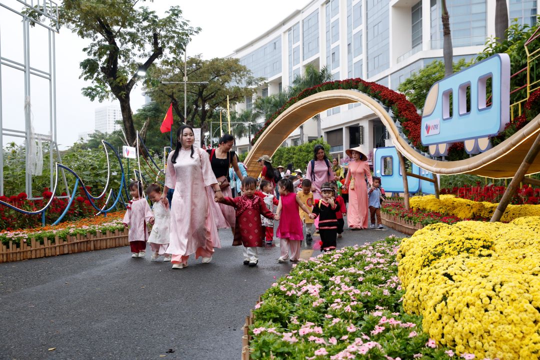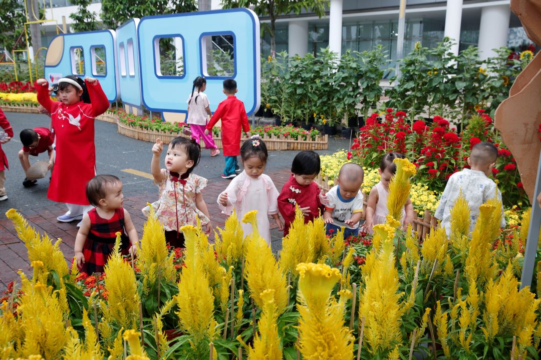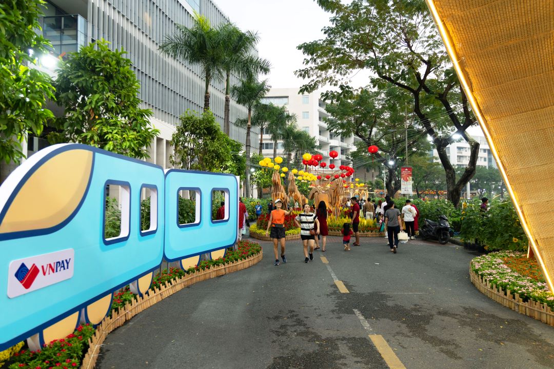 Hình ảnh tuyến Metro được đưa vào Hội hoa xuân Phú Mỹ Hưng Tết Bính Ngọ 2026