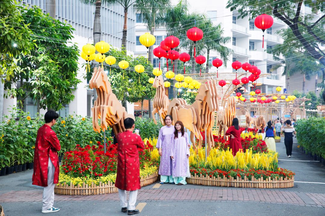 Lần đầu tiên, hình ảnh tuyến metro đưa vào Hội hoa xuân Phú Mỹ Hưng Tết Bính Ngọ 2026.