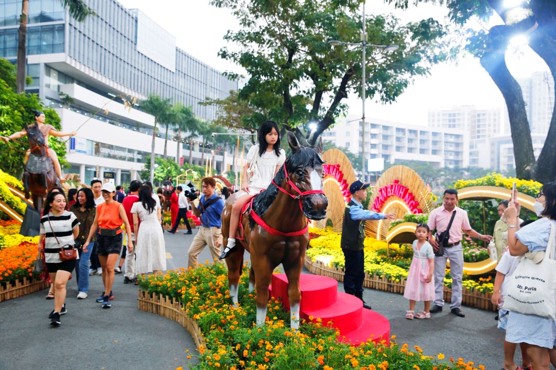 Linh vật ngựa cao 4,5m đã xuất hiện tại hội hoa xuân Phú Mỹ Hưng. Nhiều du khách và người dạn chụp hình kỷ niệm.