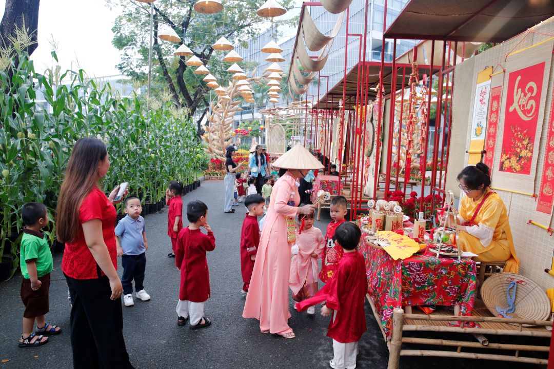 Song song với đường hoa, Chợ hoa Tết Phú Mỹ Hưng hoạt động từ ngày 8 đến trưa 16-2-2026 với hơn 100 gian hàng hoa kiểng từ nhiều địa phương, đáp ứng nhu cầu mua sắm Tết của cư dân. Khu trò chơi dân gian dành cho thiếu nhi cũng được bố trí, tạo không gian vui xuân cho cả gia đình.