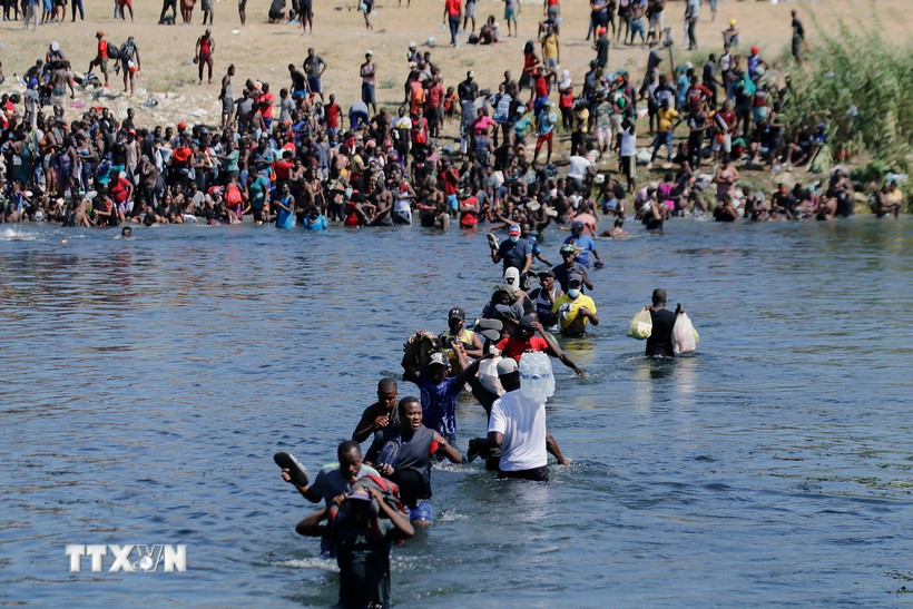 Người di cư vượt sông Rio Bravo ở biên giới Mỹ-Mexico. (Ảnh: THX/TTXVN)