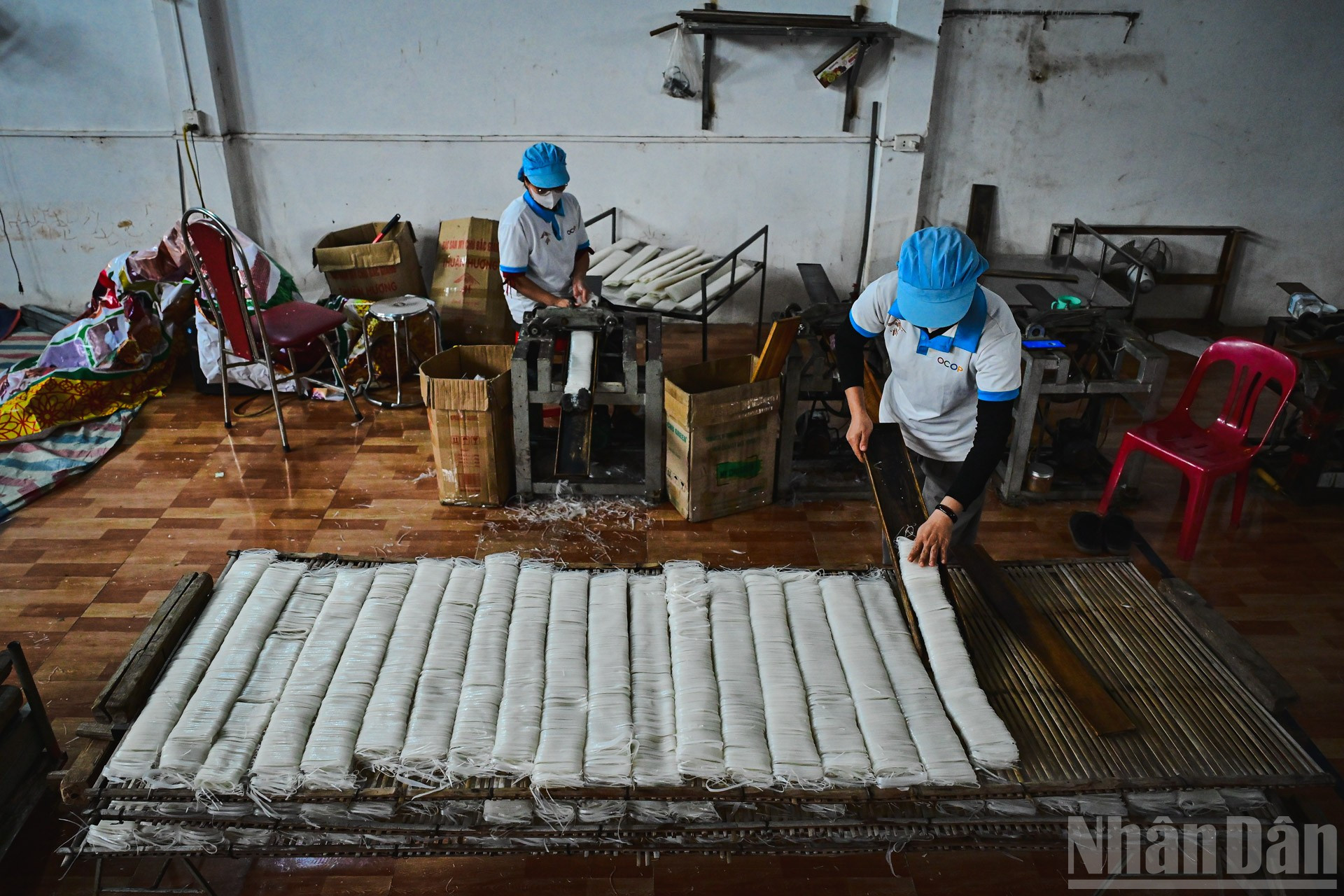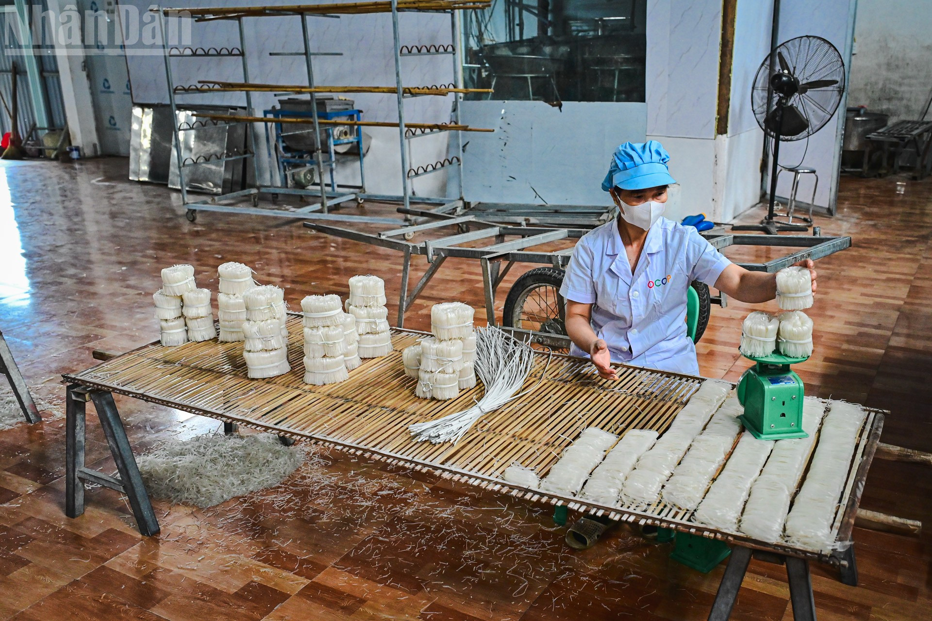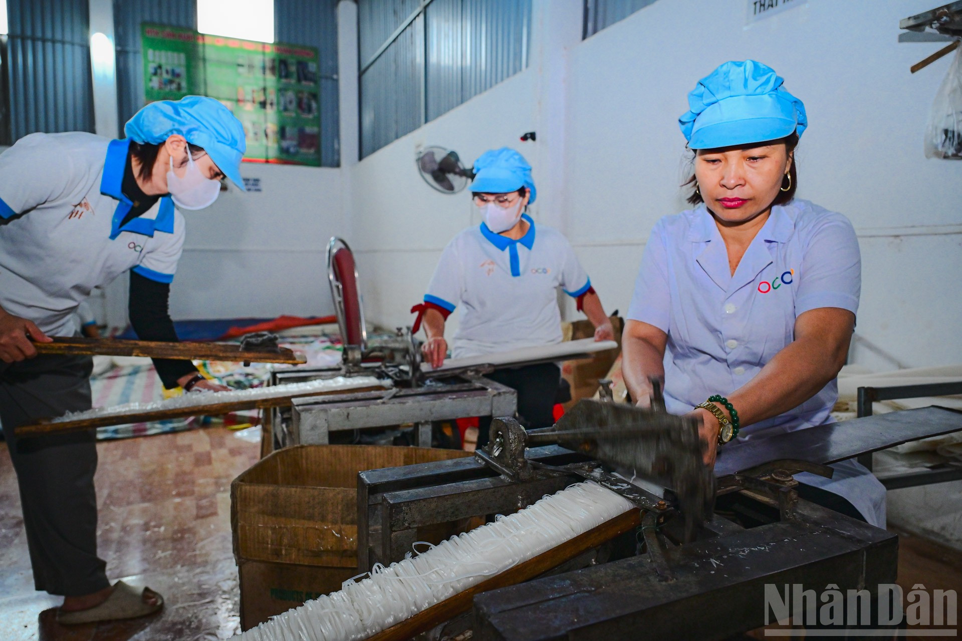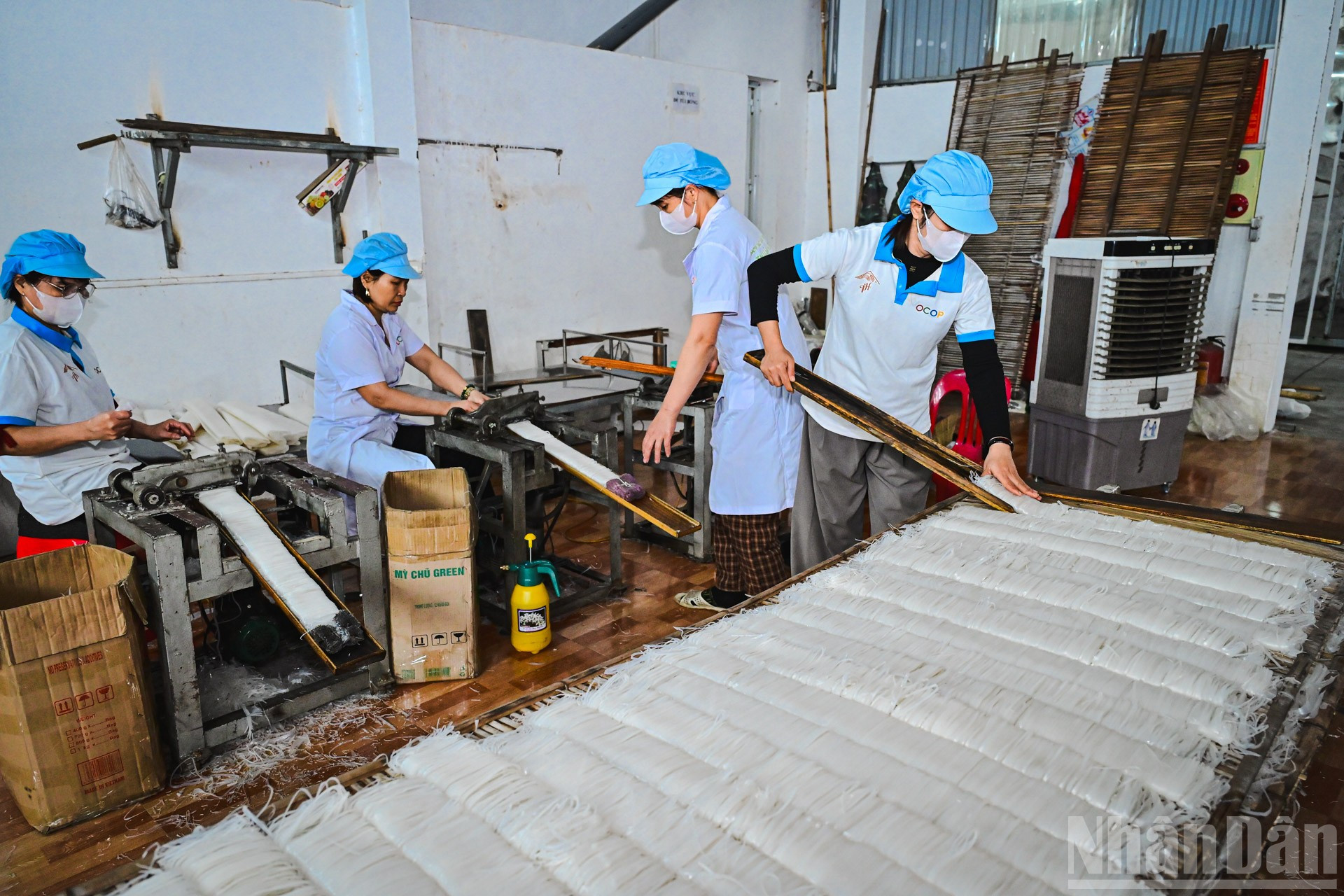 Công nghệ hiện đại giúp cho tráng bánh chín đúng độ, máy thái bánh bảo đảm mỗi sợi mỳ đều kích thước.