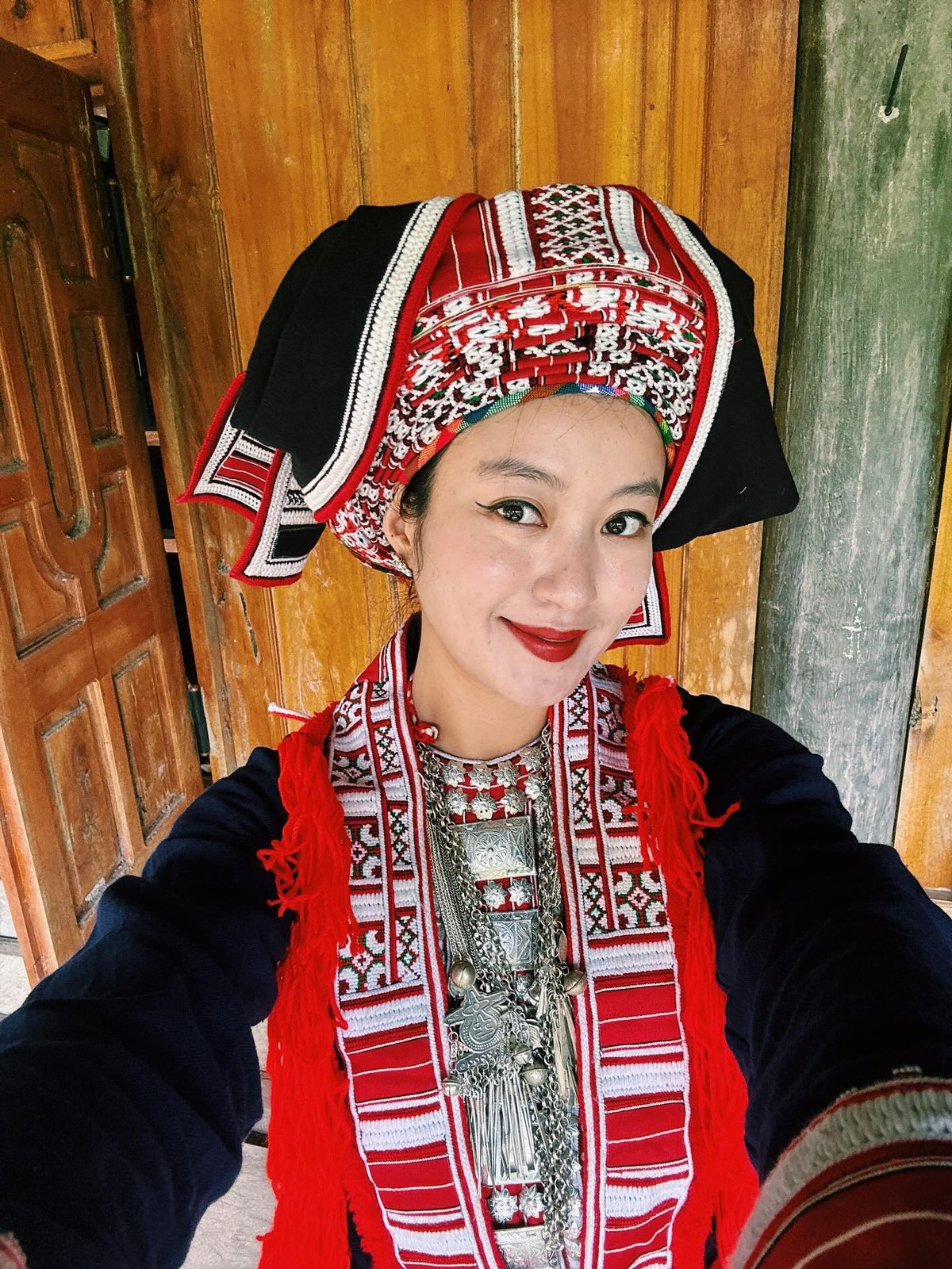 Điều gây ấn tượng mạnh mẽ trong bộ ảnh mới đăng tải trên trang cá nhân chính là việc Mi Vân đã diện trang phục truyền thống của người dân tộc Dao Đỏ, hòa mình vào không gian văn hóa bản địa đầy màu sắc.