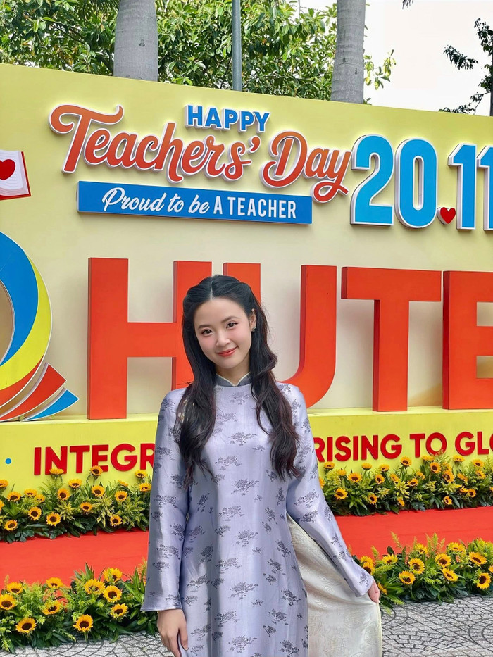 Midu mặc áo dài suông trong dịp 20/11. Ảnh: FBNV