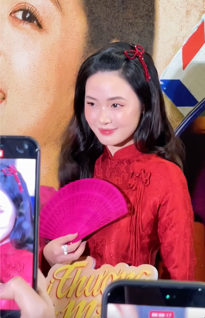Trong đoạn clip ngắn, Midu diện áo dài truyền thống với gam đỏ nổi bật. Thiết kế mang phom dáng suông, kết hợp cùng kiểu tóc uốn nhẹ và phụ kiện cài tóc, giúp nữ diễn viên ghi điểm bởi vẻ ngoài rạng rỡ, nền nã. Gương mặt tươi tắn, nụ cười nhẹ nhàng cùng phong thái tự tin của Midu khi đứng trước ống kính nhận về nhiều lời khen từ người hâm mộ.