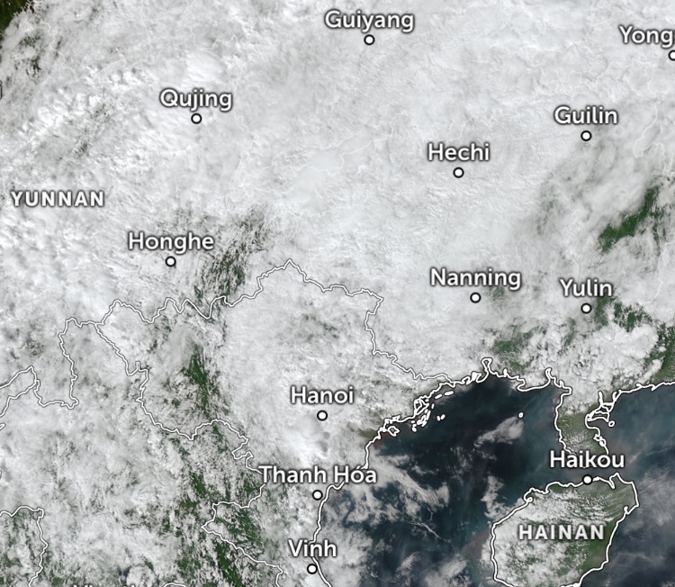 Lớp mây dày bao phủ phía Bắc - ảnh vệ tinh lúc 13 giờ 30 phút ngày 9-11. Nguồn: Z.E