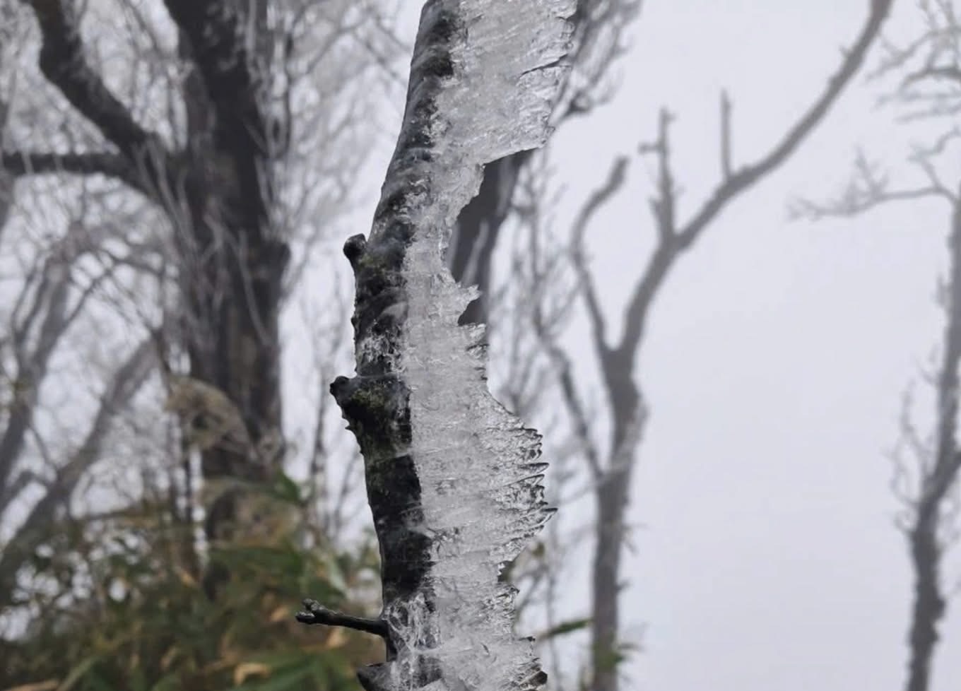 Băng giá đã xuất hiện từ ngày 5-1 tại đỉnh Phia Oắc (Cao Bằng). Ảnh: HOA HÀ
