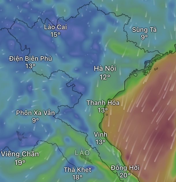 Hà Nội lúc 7 giờ chỉ có 12 độ C, theo Windy