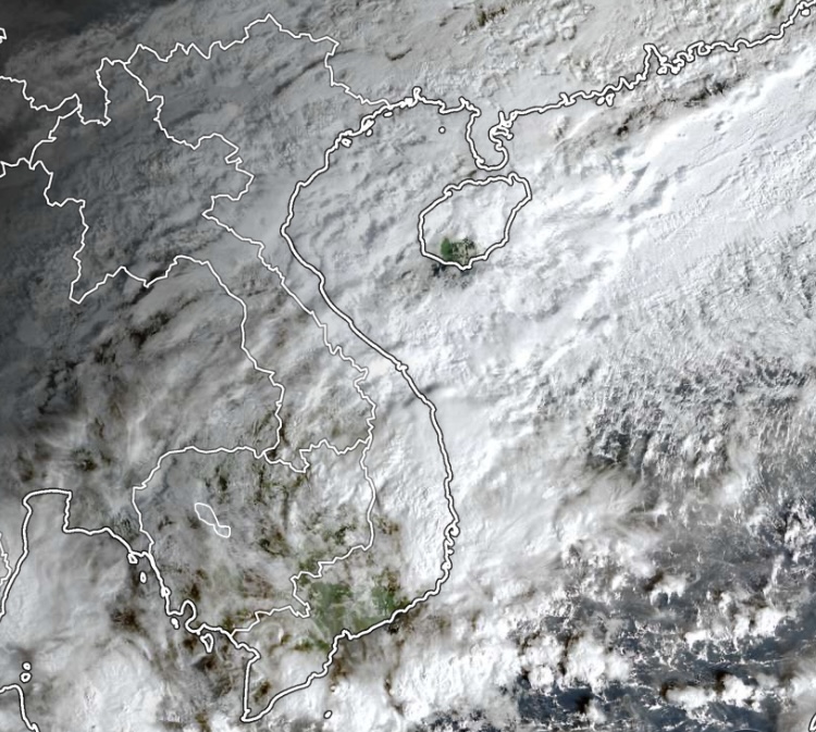 Ảnh mây vệ tinh lúc 7 giờ 20 phút sáng nay (19-11). Nguồn: Z.E