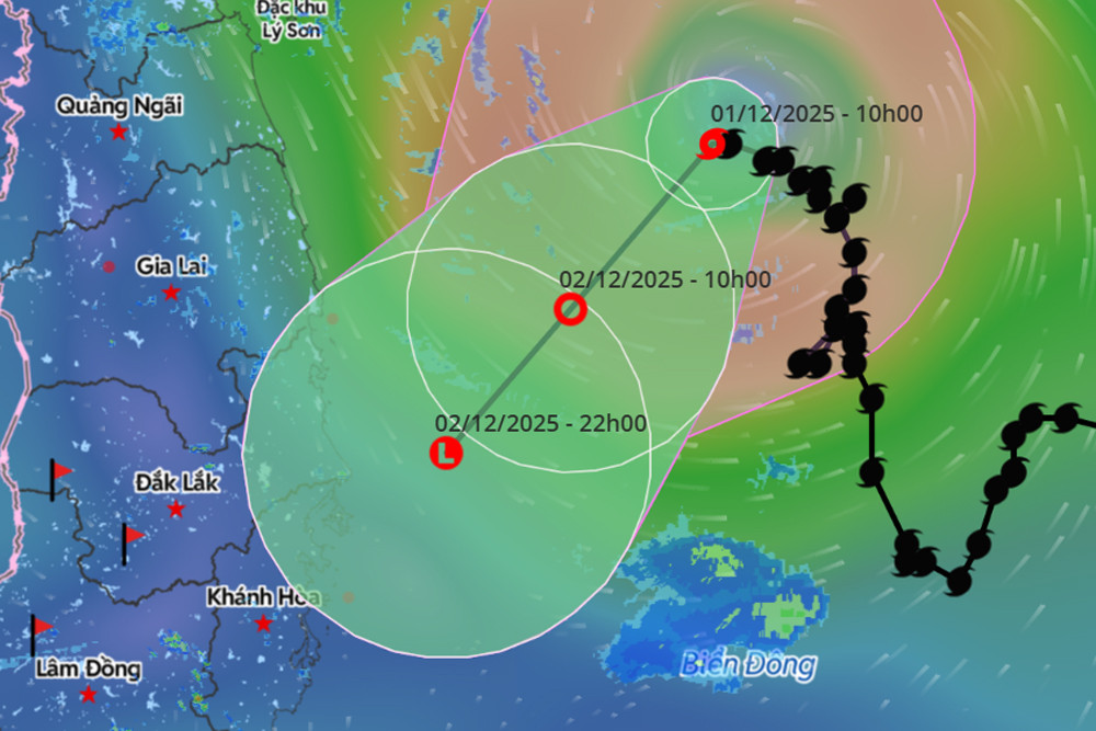Trong 24 giờ tới, bão di chuyển theo hướng Tây Nam, tốc độ khoảng 5km/h và suy yếu thành áp thấp nhiệt đới. Đến 10h sáng mai (2/12), tâm áp thấp nhiệt đới trên vùng biển phía Tây Bắc khu vực giữa Biển Đông, cách bờ biển phía Đông tỉnh Gia Lai - Đắk Lắk khoảng 170km về phía Đông; cường độ cấp 6, giật cấp 8.