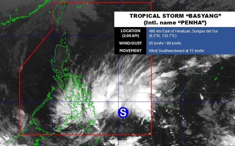 Theo Cơ quan Khí tượng Philippines, bão Penha (tên địa phương là Basyang) đã đổ bộ vào tỉnh Surigao del Sur ở khu vực Đông Nam vào tối 5.2. Đến tối 6.2, bão suy yếu thành áp thấp nhiệt đới và được ghi nhận lần cuối ở vùng biển ngoài khơi tỉnh Cebu (miền Trung), với sức gió duy trì tối đa 55 km/h, gió giật lên tới 75 km/h.