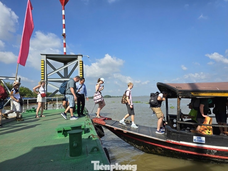 Du khách quốc tế trải nghiệm tour du lịch sông nước ở Vĩnh Long.