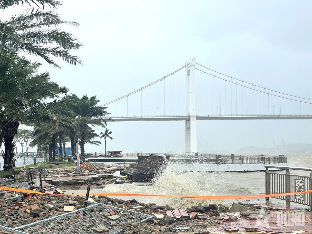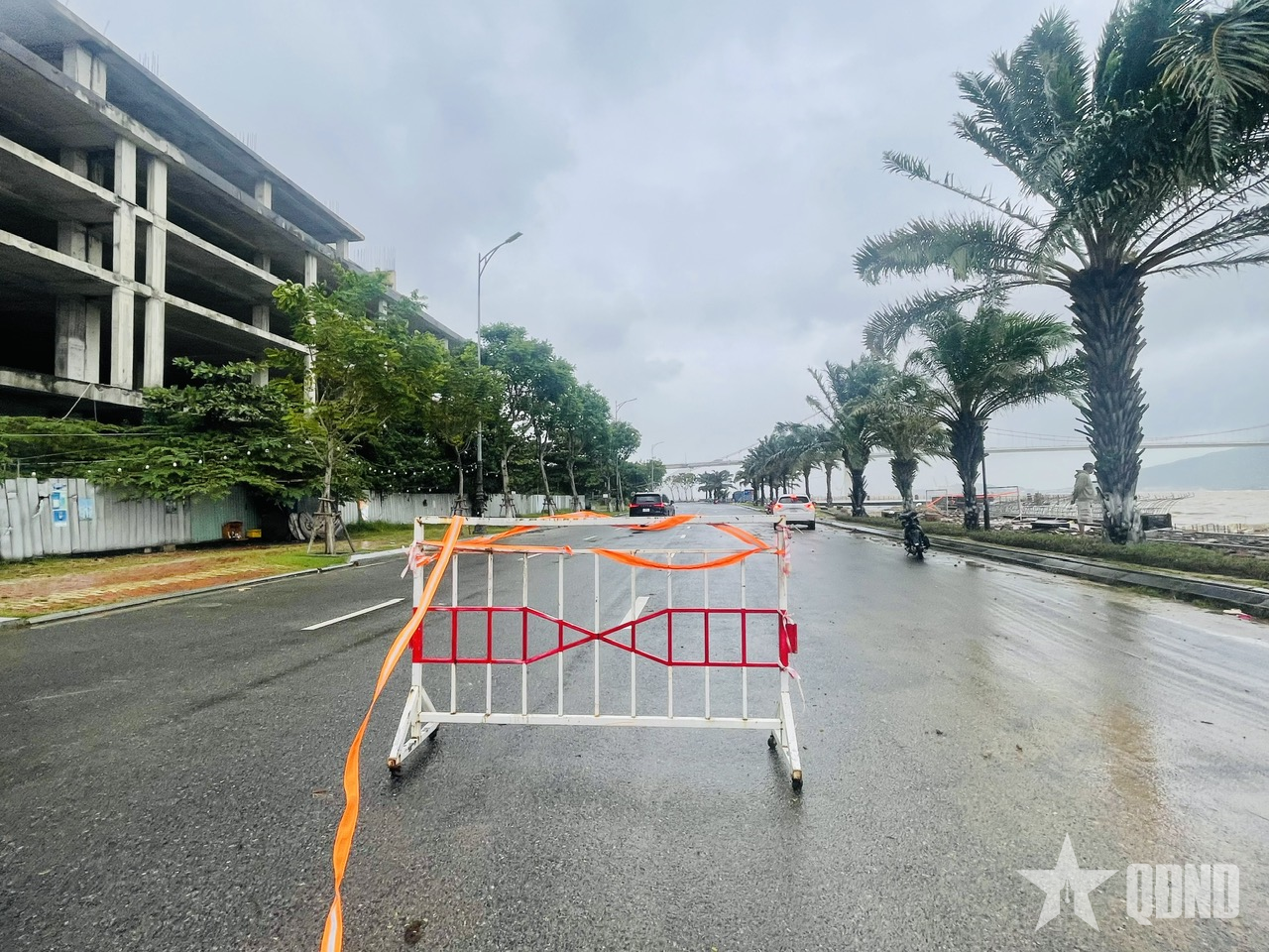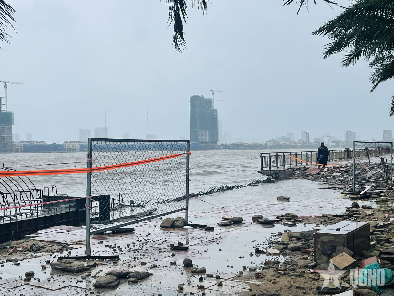 Chiều 22-10, có mặt tại phường Hải Châu, TP Đà Nẵng, chúng tôi thấy mây đen xám xịt, nước sông Hàn dâng tràn lênh láng lên mặt đường Như Nguyệt. Đoạn bờ kè dưới chân cầu Thuận Phước sóng biển dâng cao gây sạt lở, bong tróc từng mảng. Tuy nhiên, lực lượng chức năng đã rào chắn các điểm sạt lở, cấm người dân lưu thông qua đoạn đường trên dễ gây nguy hiểm. Trao đổi với chúng tôi, anh Trương Văn Trọng (phường An Hải) giọng lo lắng: “Nếu mưa to, bão lớn thì đoạn đường này sẽ bị sóng đánh tan hoang, gây khó khăn cho người dân đi lại”.