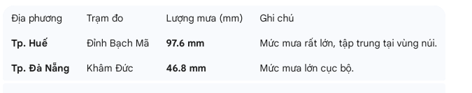 Lượng mưa gần 100mm trong vòng 12-15 tiếng tại Đỉnh Bạch Mã (vùng núi) là chỉ dấu cho thấy độ ẩm đất đã bão hòa, làm tăng nguy cơ sạt lở cho những ngày tiếp theo.