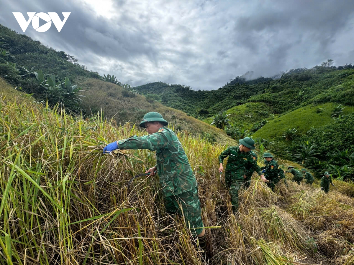 Bộ đội Biên phòng giúp dân gặt lúa chạy bão