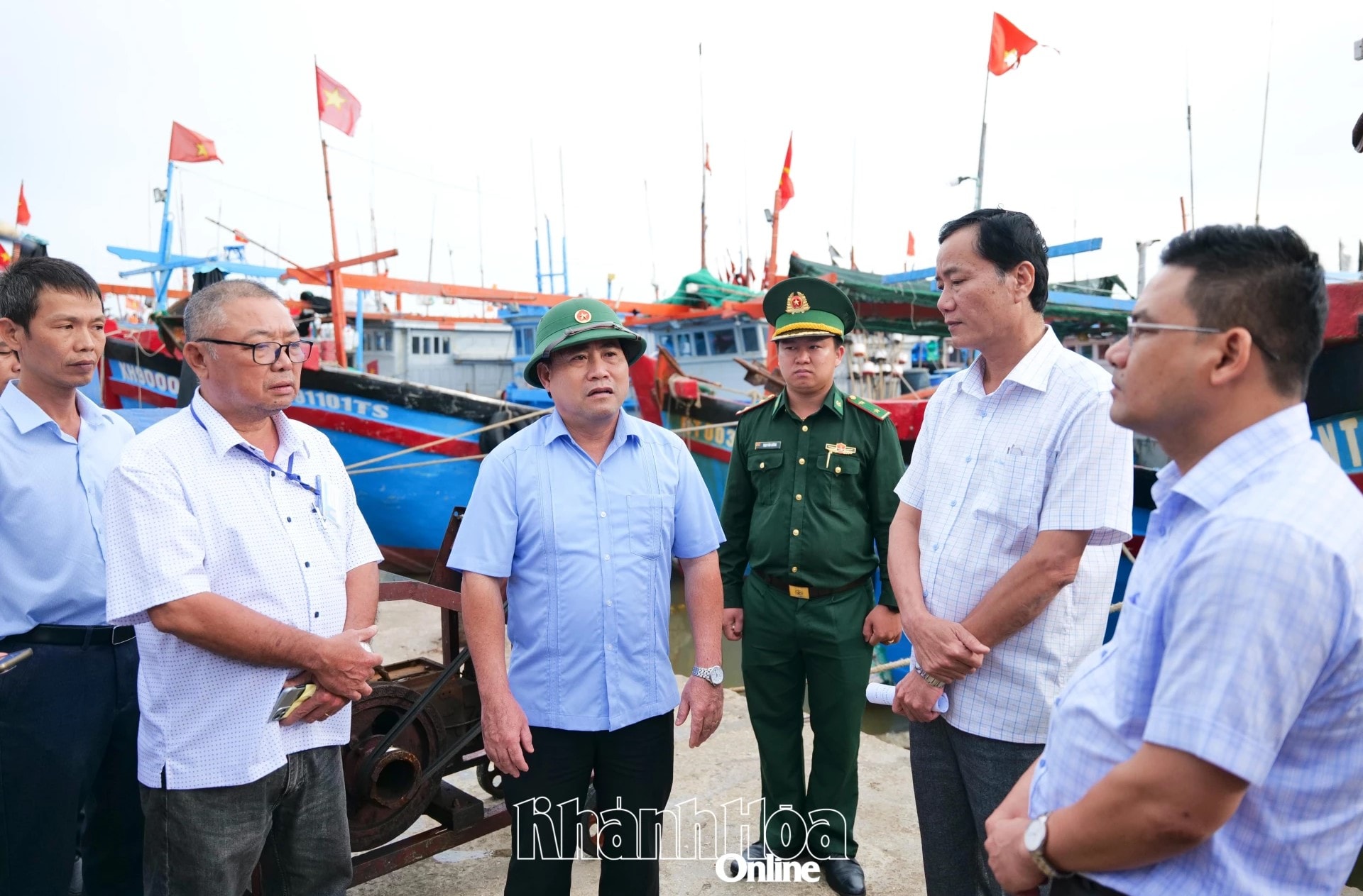 Lãnh đạo tỉnh Khánh Hòa kiểm tra, chỉ đạo các đơn vị ứng trực tại cảng cá Đông Hải không để ngư dân ngủ lại trên phương tiện theo quy định cấm biển. Ảnh: Báo Khánh Hòa