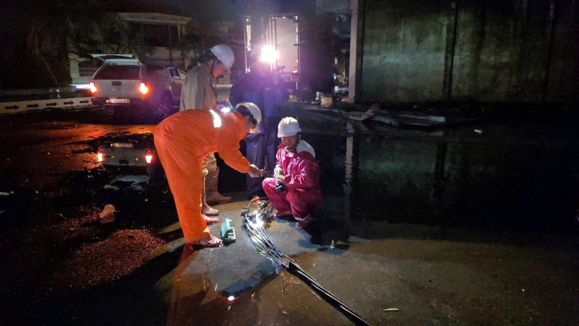 Lực lượng điện lực làm việc xuyên đêm để khôi phục cấp điện cho người dân.